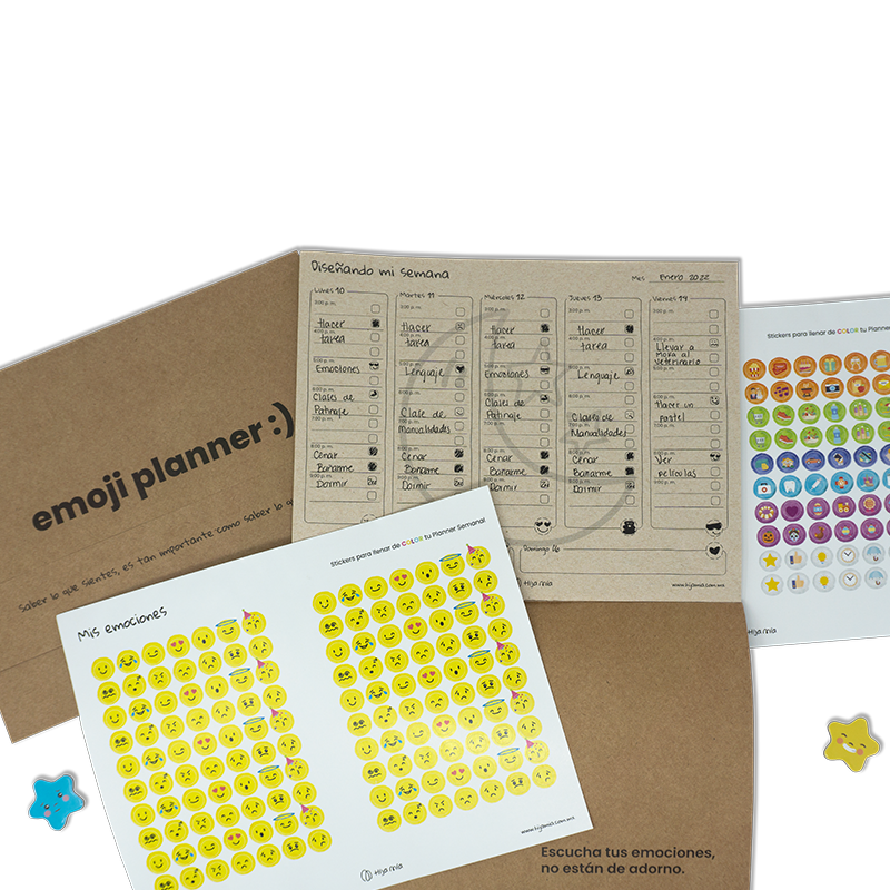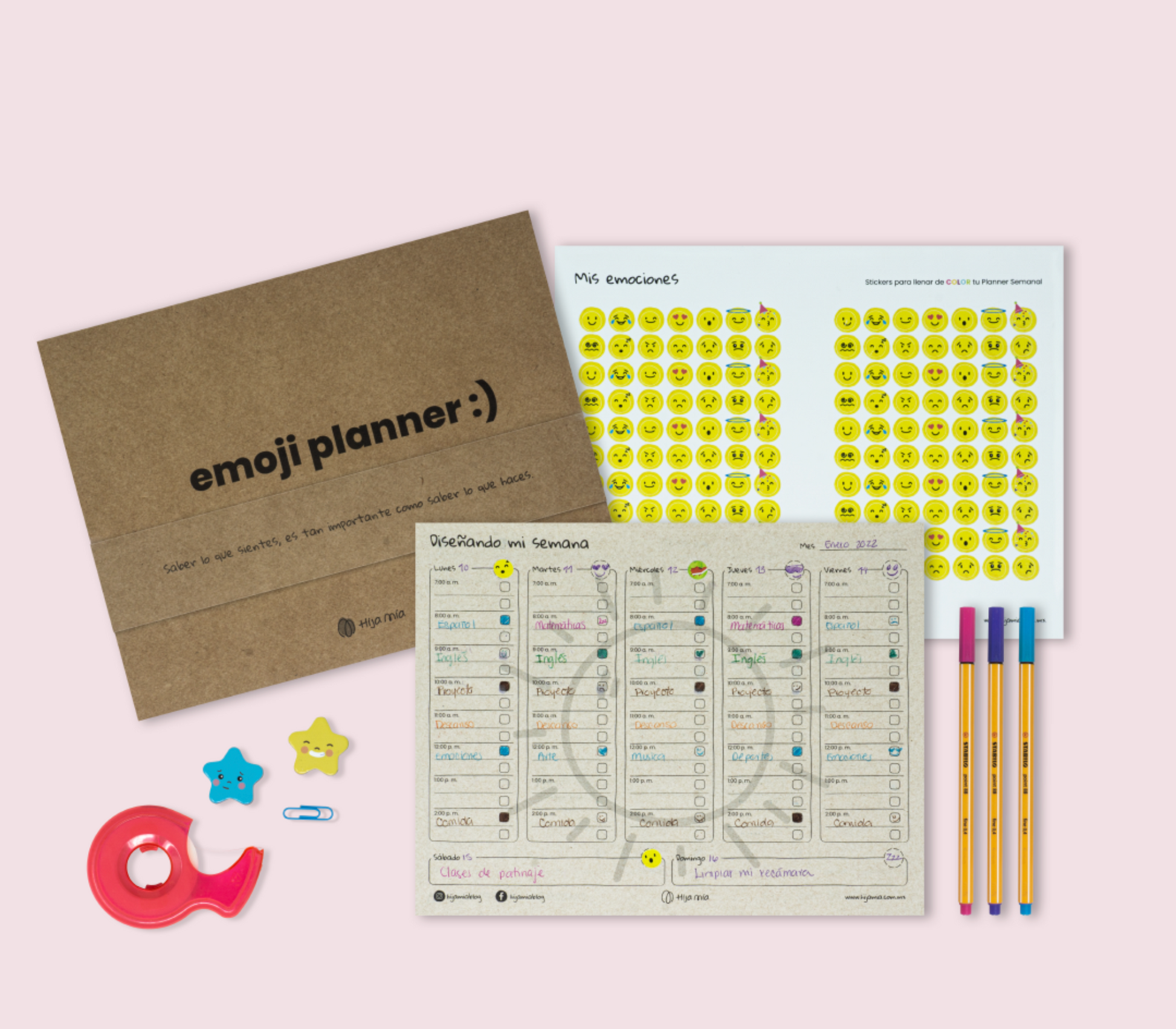 El Emoji Planner es una herramienta divertida y creativa para que niñas, niños y adolescentes aprendan a planear sus días mientras identifican y expresan sus emociones. Incluye:
